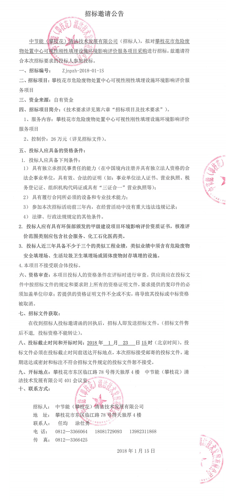 攀枝花市危險廢物處置中心可視性剛性填埋設(shè)施環(huán)境影響評價服務(wù)項目采購招標(biāo)公示