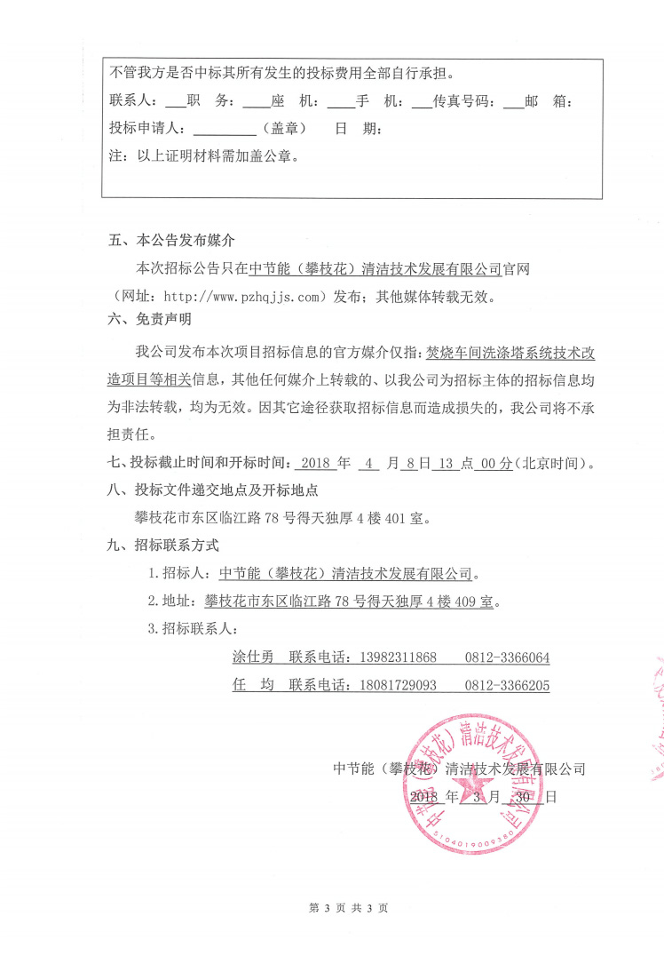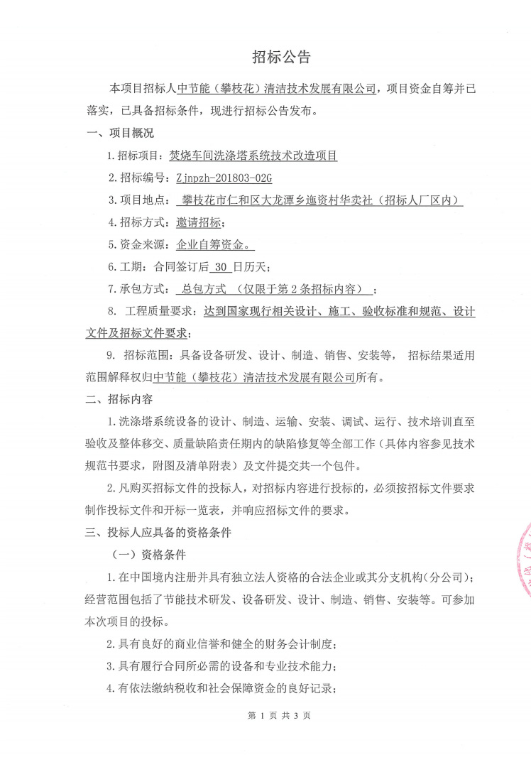 焚燒車間洗滌塔系統(tǒng)技術(shù)改造項目招標(biāo)公告