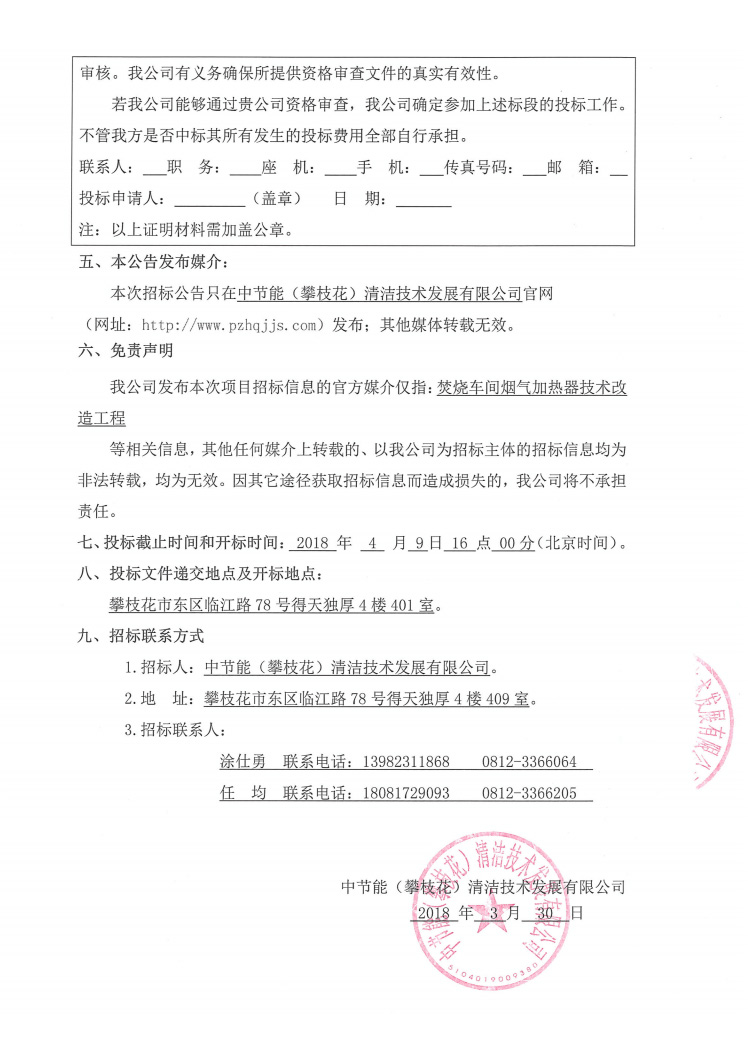 焚燒車間煙氣加熱器技術(shù)改造工程招標(biāo)公告