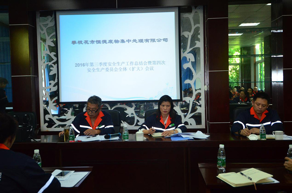 2016年11月10日下午,攀枝花市恒德廢物集中處理有限公司召開了第三季度安全生產(chǎn)工作總結(jié)會(huì)暨第四次安委會(huì)(擴(kuò)大)會(huì)議,公司安委會(huì)成員和全體員工參加會(huì)議。 會(huì)議學(xué)習(xí)了中環(huán)集團(tuán)公司鄭朝輝董事長(zhǎng)關(guān)于“中國(guó)環(huán)保